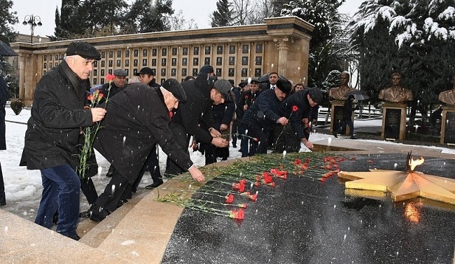 İştirakçılar əvvəlcə 20 Yanvar şəhidlərinin xatirəsini ehtiramla yad edib, abidə önünə gül dəstələri düzüblər.