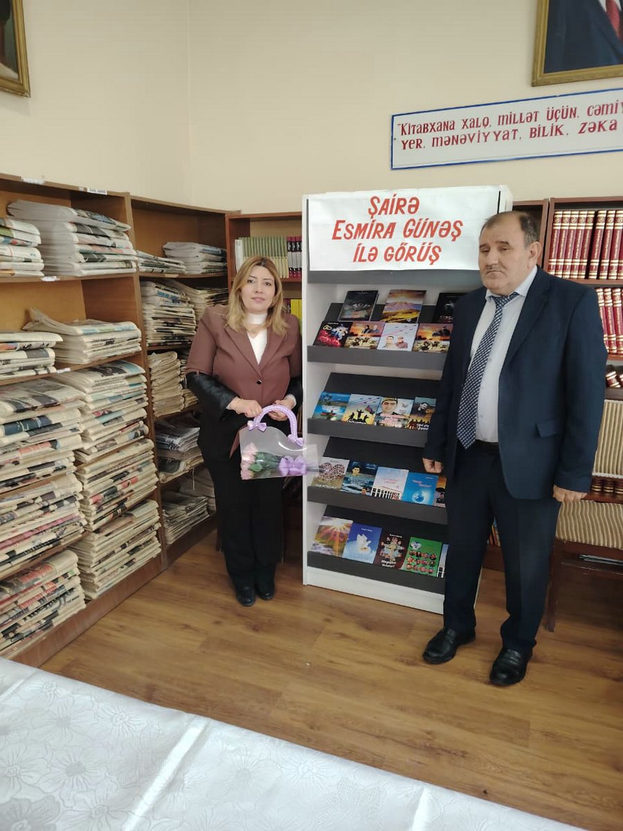 AZpress.AZ xəbər verir ki, Biləsuvar Mərkəzi Kitabxanasında baş tutan tədbirdə şəhid Azər Məmmədovun ailəsi, şəhid Əkrəm Kəlbiyevin ailəsi, "Xəzinə" ədəbi məclisinin rəhbəri Əli Aşiq, birliyin üzvlərindən şair Mirnəsiyət Mürsəlli, Mətanət Poladlı, Cəfər Şıxcan, Biləsuvar rayon Mərkəzi Kitabxanasının əməkdaşları, Şəhid Orxan Əkbərov adına Uşaq İncəsənət Məktəbinin şagirdi Quluzadə Humay, kitabxananın oxucuları və s. iştirak ediblər. Tədbir Şəhidlərin xatirəsinin bir dəqiqəlik sükutla yad edilməsi ilə başlayıb. Mərkəzi Kitabxananın direktoru Elşad Talıbov qonaqları salamlayıb və şairə Esmira Günəşin yaradıcılığından bəhs edərək, bildirib ki, Esmira xanım ölkədə şəhidlər haqqında ən çox kitab yazan şairədir. Onun yaradıcılığının böyük bir hissəsini vətənpərvərlik mövzusu və Şəhidlərə olan sevgisi təşkil edir. Daha sonra söz Esmira Günəşə verilib. Şairə xanım dəvət üçün Biləsuvar Mərkəzi Kitabxanasının rəhbərliyinə və Şirvan - Salyan regional mədəniyyət idarəsinə təşəkkür edib. Biləsuvar şəhidlərindən Azər Məmmədovun və Əkrəm Kəlbiyevin yer aldığı kitabları ailə üzvlərinə təqdim edib, həmçinin mərkəzi kitabxananın fonduna müxtəlif mövzularda nəşr olunmuş 18 kitabını hədiyyə edib.Tədbir boyu bütün şəhidlər yad olunub, xüsusilə də şairə Esmira Günəşin kitablarında yer alan şəhidlərdən əlavə Biləsuvar rayonu Mərkəzi Kitabxanasının rəhbəri Elşad Talıbovun şəhid kürəkəni Talıblı Asif Arif oğlu da yad edilib. Tədbirin gedişatında qonaqlar Humay Quluzadənin canlı ifasında "Xudayar təsnifini" və şairlərin Şəhidlər haqqında yazılmış şeirlərini dinləyiblər. Hətta şairə Esmira Günəşin Şəhid Azər Məmmədovun xatirəsinə həsr etdiyi şeirini şəhidin qızı Zeynəb xanım səsləndirib. Tədbirin sonunda Kitabxana kollektivi adından şəhid ailələrinə və şairə Esmira Günəşə gül buketi hədiyyə olunub. Azər Məmmədovun qızı Zeynəb xanım isə şairə Esmira Günəşin portretini çəkərək, tədbirdə hədiyyə edib.