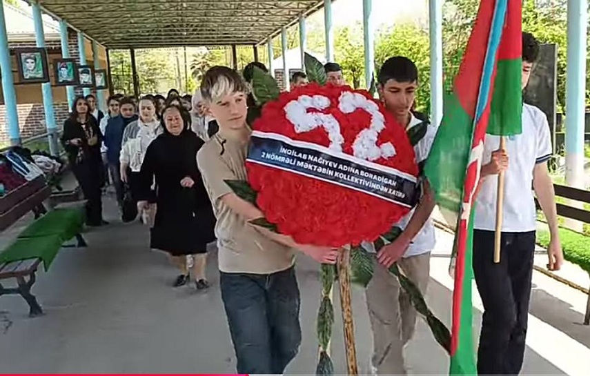 Daha sonra tədbir şəhidin məzarı önündə davam etdirilib. İştirakçılar şəhidin məzarını ziyarət edərək önünə gül dəstələri düzüb, ruhuna dualar oxuyublar.