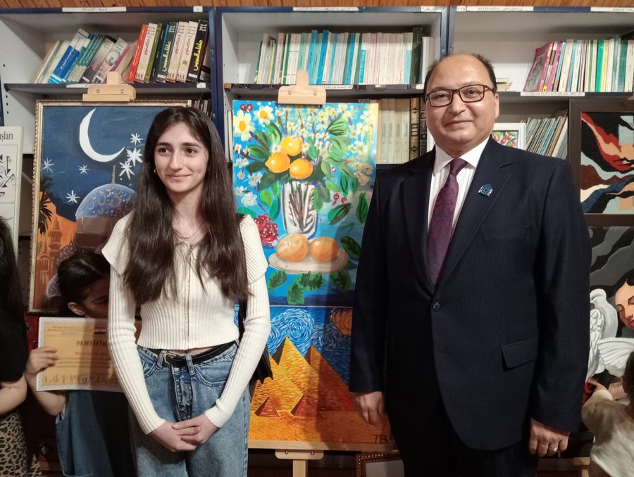 Sonda mərkəzin müdiri Prof.Dr.Tarek Aboul Fotouh incəsənətin sərhədləri aşan universal bir dil olduğunu vurğuladı.