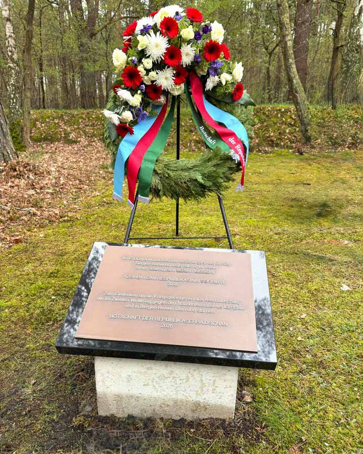 Azərbaycanın Almaniyadakı səfirliyi tərəfindən Azərbaycan və alman dillərində hazırlanmış xatirə lövhəsinin açılışı münasibətilə Bergen-Belzen memorial kompleksinin hərbi əsirlər məzarlığında mərasim keçirilib.