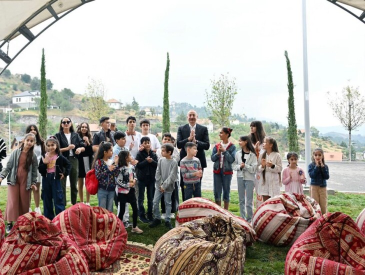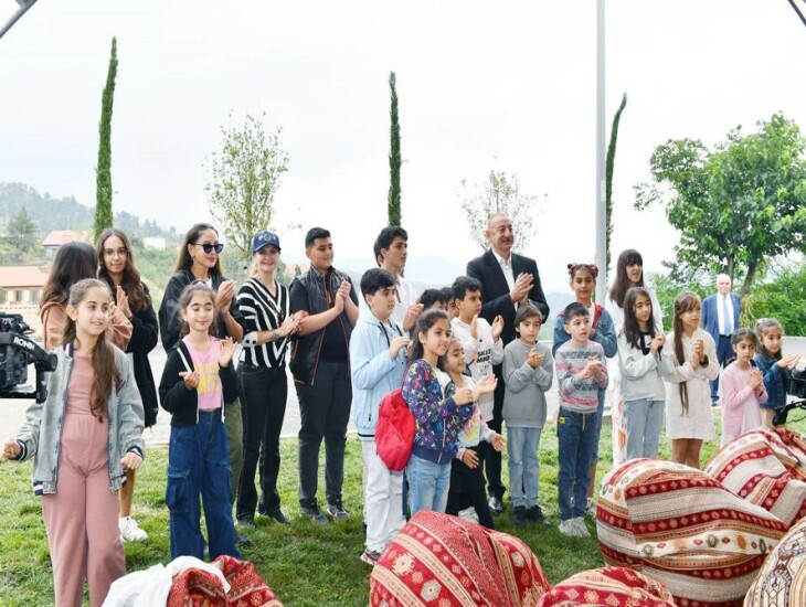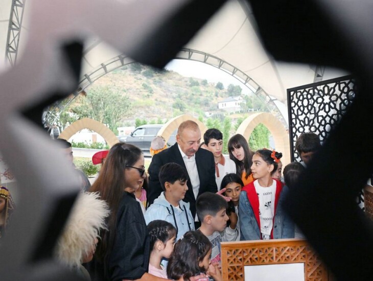 İlham Əliyev xanımı ilə Laçında bayram şənliyində iştirak edib