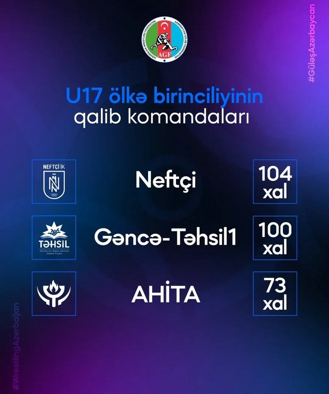 Astarada 17 yaşlı (U-17) yeniyetmələr arasında idman güləşi üzrə keçirilən seçmə xarakterli Azərbaycan birinciliyində sərbəst güləşçilərin yarışı başa çatıb. Fərdi yaşayışlardan sonra komandaların yerləri müəyyənləşib. AGF- dən verilən məlumata görə komanda hesabında birinci yeri 104 xalla "Neftçi" Sağlamlıq İdman Mərkəzi tutub. İkinci yerə 100 xalla "Gəncə-Təhsil" çıxdığı yarışda ilk üçlüyü isə AHİTA (73 xal) tamamlayıb.