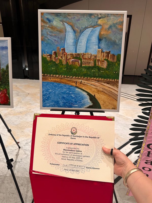 20 may tarixində Seulda, Koreya Respublikasında Azərbaycan Respublikasının Səfirliyi tərəfindən Azərbaycanın Müstəqillik Günü münasibətilə təşkil olunmuş rəsmi qəbul çərçivəsində azərbaycanlı rəssamların sərgisi keçirildi.
