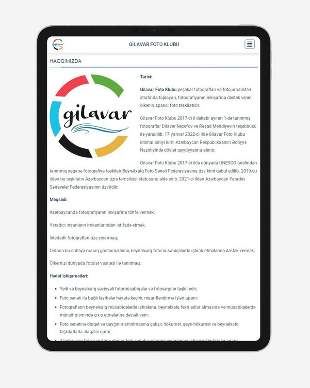 Qeyd edək ki, ölkənin aparıcı foto təşkilatı olan “Gilavar Foto Klubu” ictimai birliyi Azərbaycanda fotoqrafiyanın inkişafı ilə bağlı bir sıra layihələlər, həmçinin sosial istiqamətlər üzrə layihələr həyata keçirir. Birlik tərəfindən ölkənin tarixi, təbiəti, mədəni, idman və digər sahələrinə aid fotoların çəkilməsi və toplanması işlərini icra edilir. Bundan əlavə, müxtəlif təlimlər, yerli və beynəlxalq səviyyəli fotomüsabiqələr, fotosərgilər təşkil edilir.