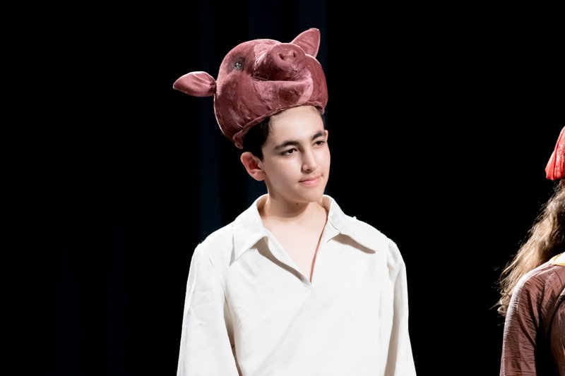Əsərdə yumoristik elementlərin əsas daşıyıcısı olan donuz obrazlarını Selcan Əşrəfzadə və Rauf Bağırzadə canlandırdı. Onların dueti bir-birini tamamlayan və səhnə harmoniyasını qoruyan möhtəşəm bir tandem oldu. Əyləncəli jestləri, orijinal və maraqlı çıxışları zalda coşqu ilə qarşılandı.