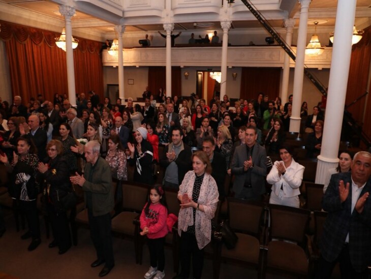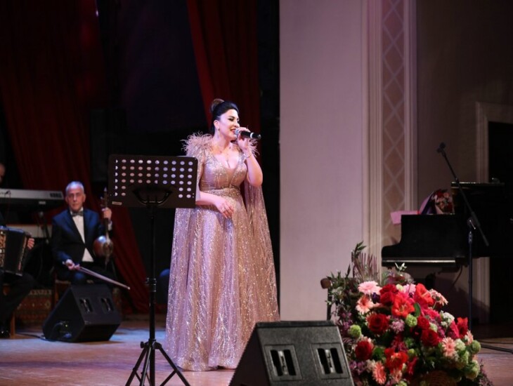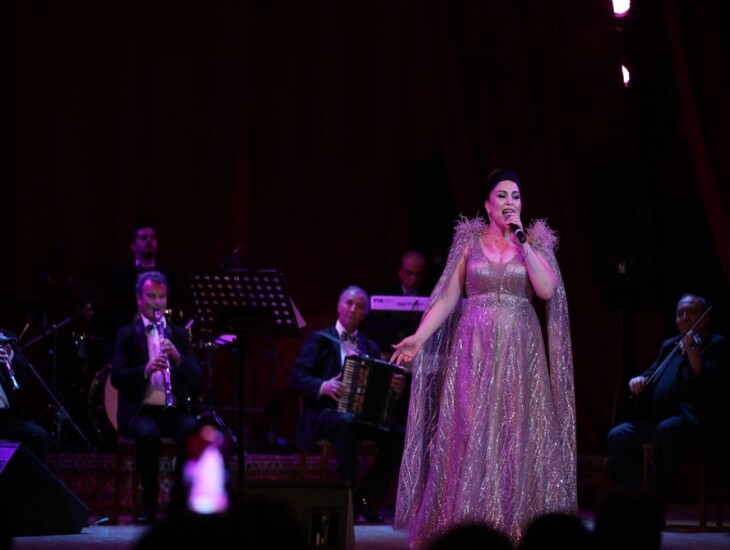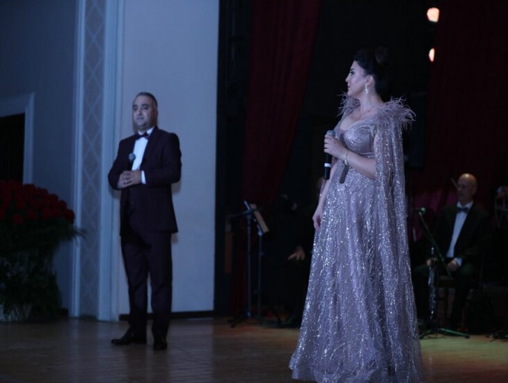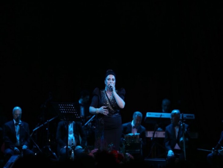 Öncə vurğulamaq istəyirəm ki, konsertə yığışan insanların arasında tanınmış musiqi xadimləri də var idi. Konsertin aparıçısı zalda əyləşən tamaşaçıları salamlayaraq R.Behbudov adına Dövlət Mahnı Teatrın nəzdində tarzən Mirxalid Salayevin rəhbərliyi altında fəaliyyət göstərən instrumental ansamblı təqdim etdi. Ansamblın ifasında görkəmli bəstəkarımız Arif Məlikovun “Sehirli xalat” kinofilminə yazdığı musiqi əsasında gözəl kompozisiya səsləndirildi və bu tamaşaçıları 70-80-ci illərdə yaradılmış möhtəşəm musiqiyə köklədi. Ondan sonra sürəkli alqışlarla səsinin vurğunu olduğum muğənni Aynur İsgəndərli səhnəyə dəvət edildi və konsert başladı.