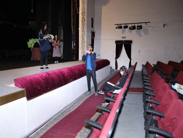 Lənkəran Dövlət Dram Teatrında Tərlan Abdullayevin müəllifi və quruluşçu rejissoru olduğu "Yalançı şahzadə" bir hissəli nağıl-tamaşasının son məşqləri gedir.