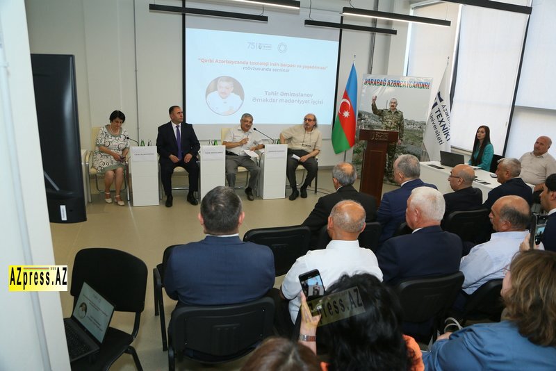 AZpress.AZ xəbər verir ki, Azərbaycan Texniki Universitetinin (AzTU) Qərbi Azərbaycan Texnoloji İrsi Mərkəzinin təşkilatçılığı ilə “Qərbi Azərbaycanda texnoloji irsin bərpası və yaşadılması” mövzusunda seminar keçirilib. Məqsəd Qərbi Azərbaycanda formalaşan texnoloji irsin müasir dövr üçün aktuallığının elmi aspektdən qiymətləndirilməsi və müzakirəsi olub.