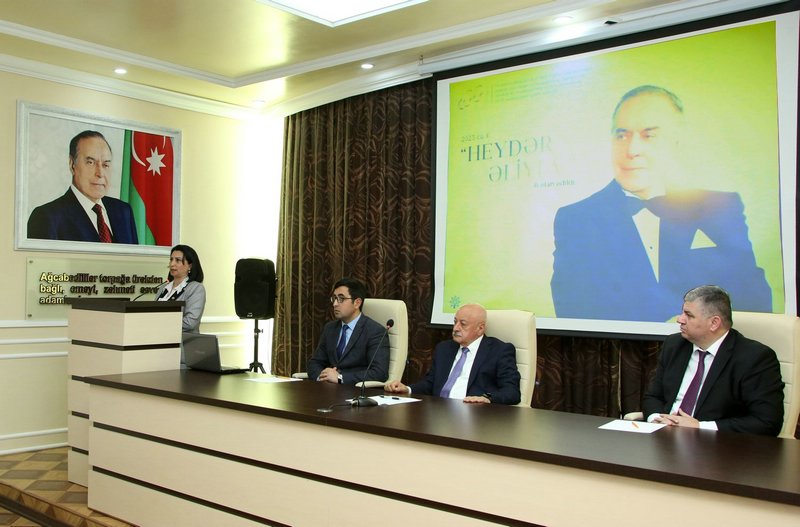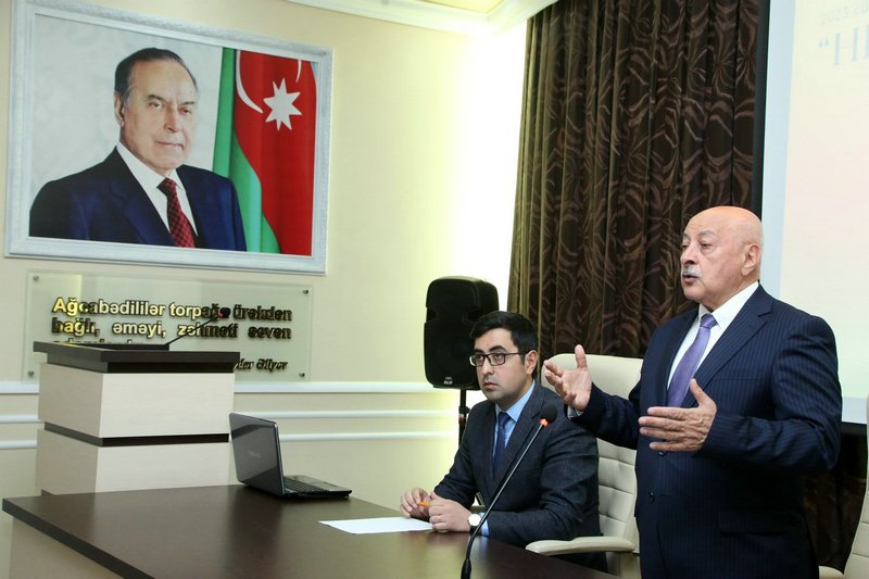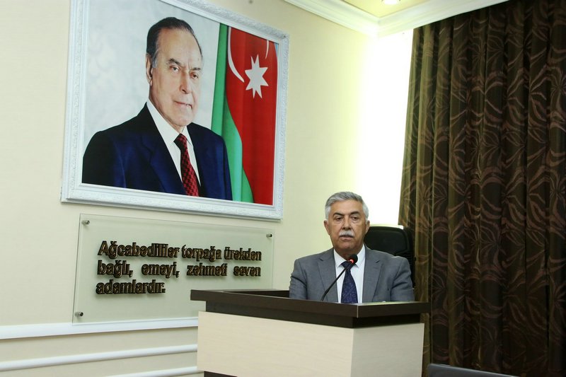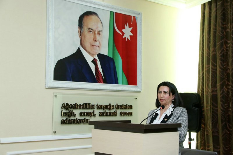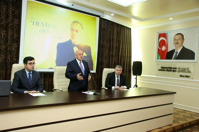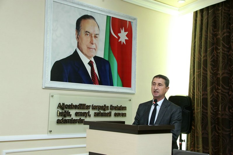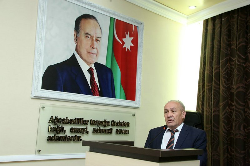 Məruzə ilə çıxış edən Azərbaycan Dövlət Pedaqoji Universitetinin Ağcabədi filialının Tərbiyə işləri üzrə direktor müavini, dosent Mahir Səlimov Ulu Öndər Heydər Əliyevin Azərbaycan xalqının taleyində oynadığı mühüm roldan, onun yorulmaz siyasi fəaliyyətindən geniş söz açıb. Natiq bildirib ki, müasir, güclü Azərbaycanın qurulmasında, inkişaf etməsində dahi şəxsiyyətin misilsiz xidmətləri qədirbilən Azərbaycan xalqı tərəfindən həmişə yüksək qiymətlədirilib və Vətənini sevən hər kəsin yaddaşına ömürlük həkk olunub.
