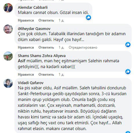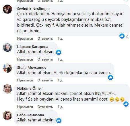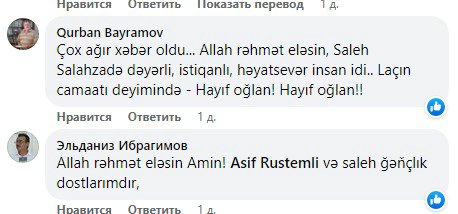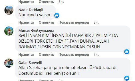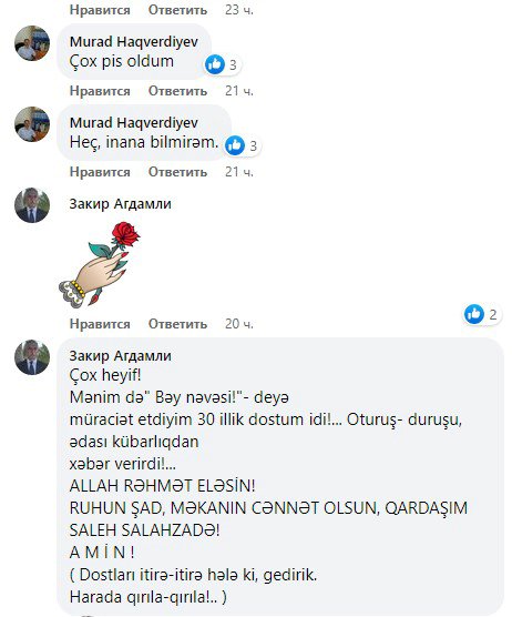 Əziz dostum, səmimi insan, həmişə “Bəy nəvəsi” – deyə müraciət etdiyim (Laçınlı Soltan Bəy nəslinin yadigarı idi - A.R.) Saleh Salahzadə dağ çayı kimi nəğməyə çevrilib axıb getdi... Bizləri, sevdiyi vətəni, təbiəti 70 yaşın astanasında əbədi tərk etdi. Məkanı cənnət olsun!