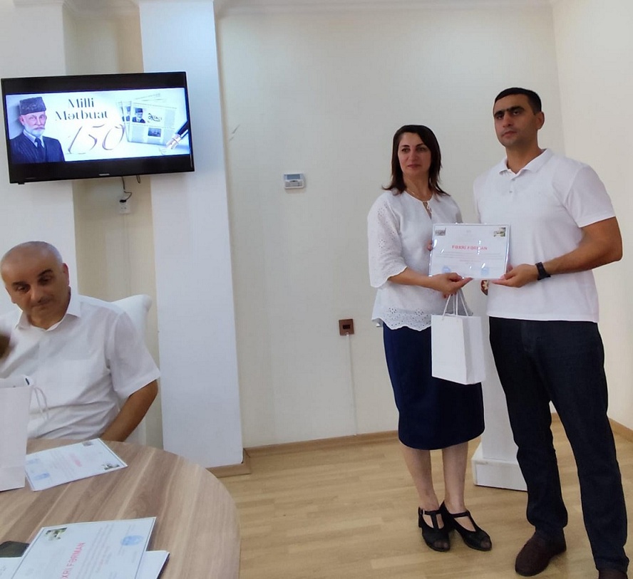 Muzeyin direktoru, Əməkdar mədəniyyət işçisi, Azərbaycan Jurnalistlər Birliyinin üzvü Əntiqə Tağıyeva, rayon mərkəzi kitabxana sisteminin direktoru Zamin Məmmədov KİV nümayəndələrini Milli Mətbuatımızın 150 illik yubileyi münasibətilə təbrik edib, onlara şərəfli, məsuliyyətli işlərində uğurlar arzulayıblar.