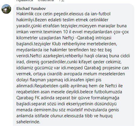 Ölkə futbolunda son illər hakimlik adına münbit şərait yaradılıb. Heç bir təzyiq yox, əksinə, hakimlər düşünmədən özləri oyunlarda aqressivlik yaradır, meydanlarda hegemonluq iddiasına düşürlər. Barış Şimşəklə yanaşı tərcüməçi/departament rəhbəri(!) də "xurcun"unu çiyninə atıb, "bu oyun mənim, o oyun sənin" düşüncəsi ilə işə yanaşılırsa, qarşılaşmalarda VAR "var-yox"a qarışır...