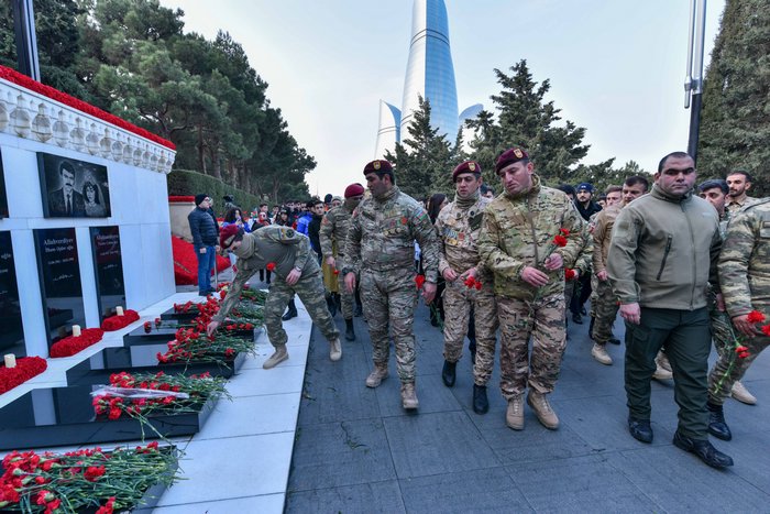 Silsilə tədbirlər çərçivəsində Təşkilatın idarə heyətinin üzvlərinin, Vətən müharibəsi qazilərinin və üzv gənclərin iştirakı ilə 20 Yanvar – Ümumxalq Hüzn Günü ilə əlaqədar Şəhidlər xiyabanı ziyarət olunub. Ölkəmizin suverenliyi və müstəqilliyi uğrunda canından keçmiş şəhidlərimizin əziz xatirəsi dərin ehtiram və qürurla yad edilib. Vətənimizin ərazi bütövlüyü uğrunda həyatlarını itirmiş, xalqımızın azadlığını hər şeydən uca tutan qəhrəman Vətən övladlarının xatirəsinə ucaldılmış “Əbədi məşəl” abidəsinin önünə və şəhid məzarlarına gül dəstələri qoyulub.