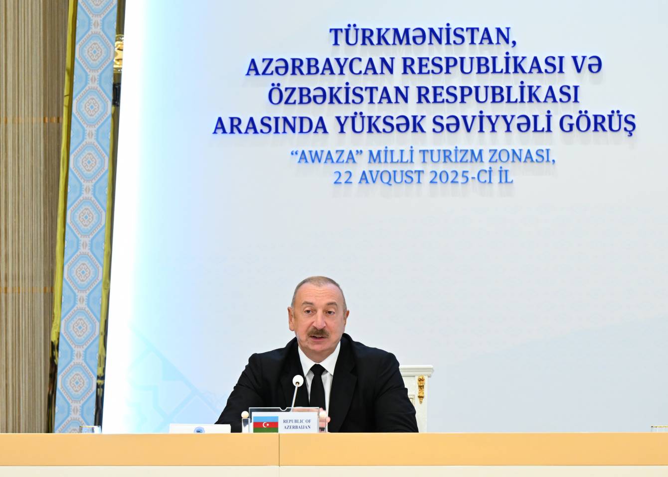 Avqustun 22-də Türkmənbaşı şəhərində Azərbaycan Respublikasının Prezidenti İlham Əliyev, Türkmənistan Xalq Məsləhətinin sədri Qurbanqulu Berdiməhəmmədov və Özbəkistan Respublikasının Prezidenti Şavkat Mirziyoyev Türkmənistan, Azərbaycan Respublikası və Özbəkistan Respublikası arasında yüksəksəviyyəli görüşün yekunlarına dair mətbuata birgə bəyanatla çıxış ediblər.