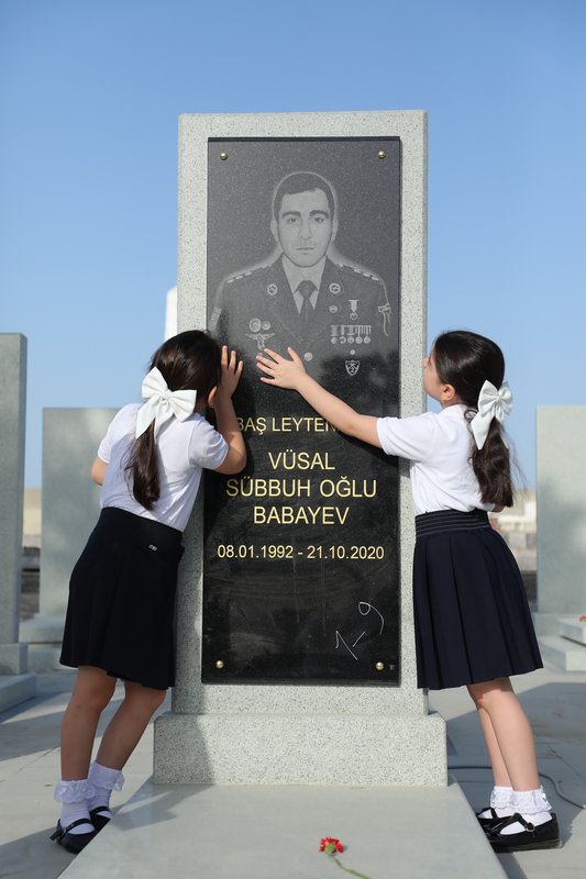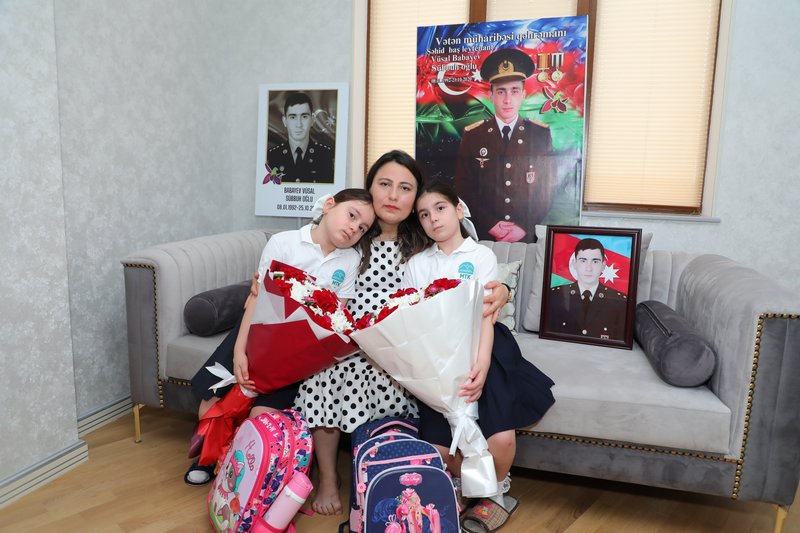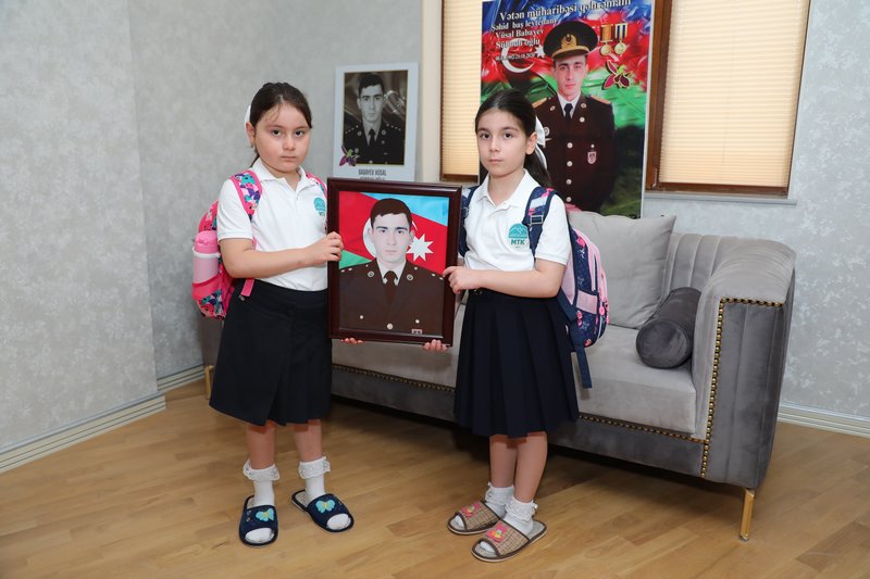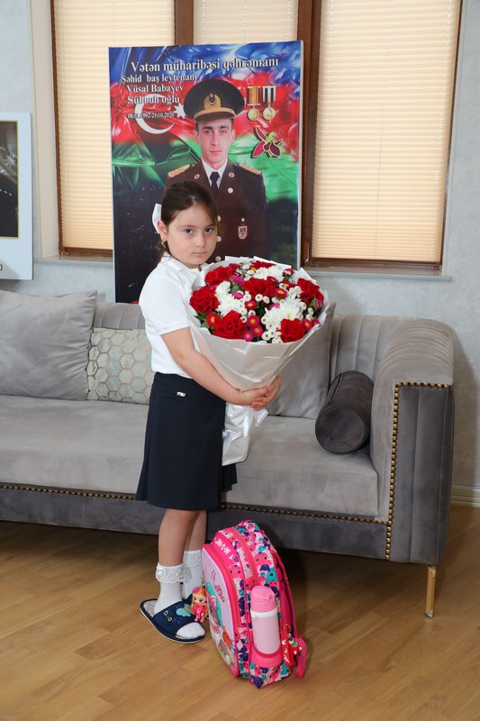 Şəhid, Azərbaycan bayraqlı Baş leytenant Vüsal Babayevin qızı Rüqəyyə birinci sinfə qədəm qoyub.