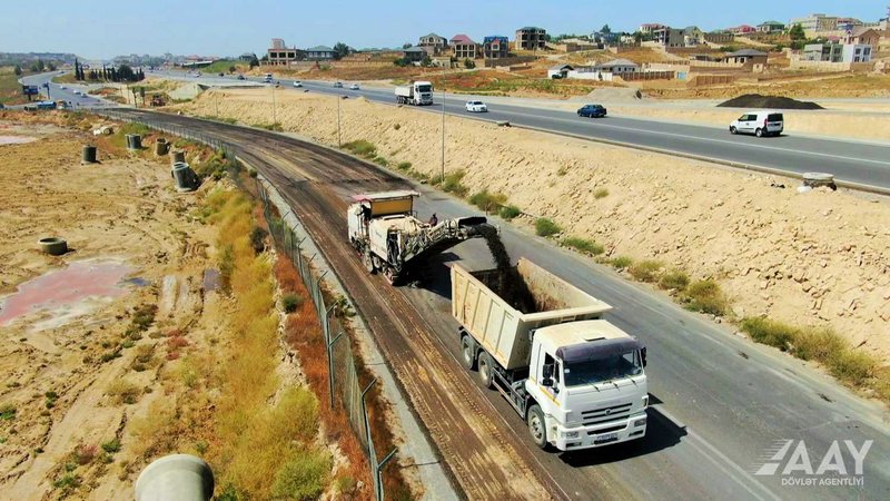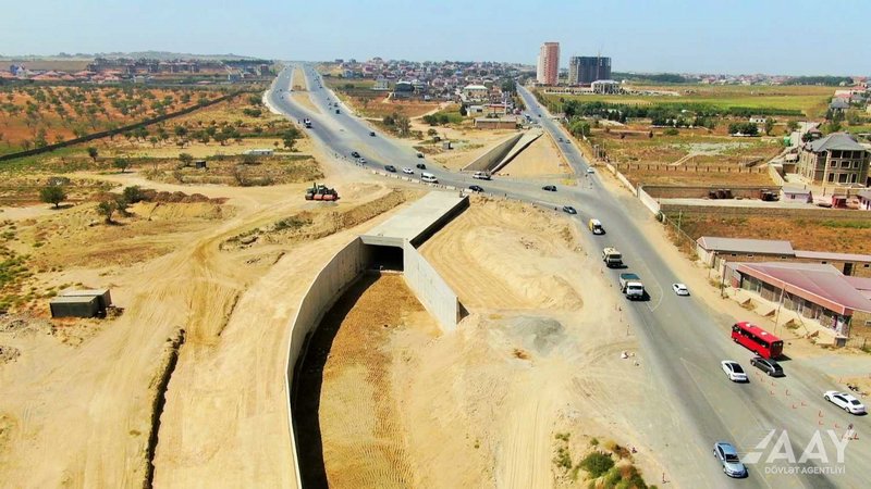 • həmçinin avtomobil yolunun Xırdalan şəhəri ilə birləşən hissəsində yol ötürücüsünün tikintisi üzrə işlər də aparılır.