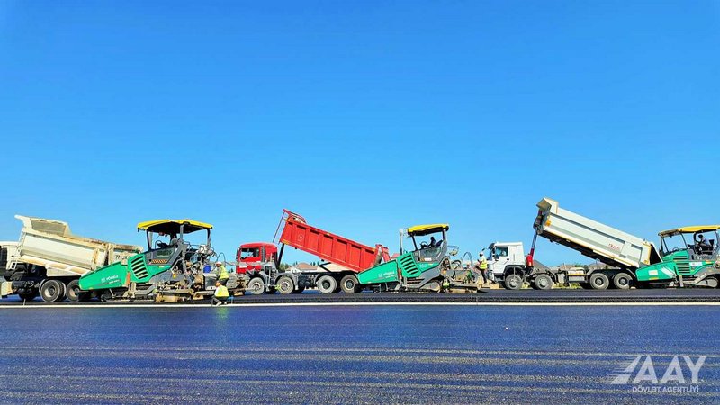 • 7 km-lik hissədə yol geyiminin alt və üst laylarının tikintisi, asfalt-beton örtüyünün döşənməsi və çiyinlərin bərkidilməsi işləri tamamlanıb.