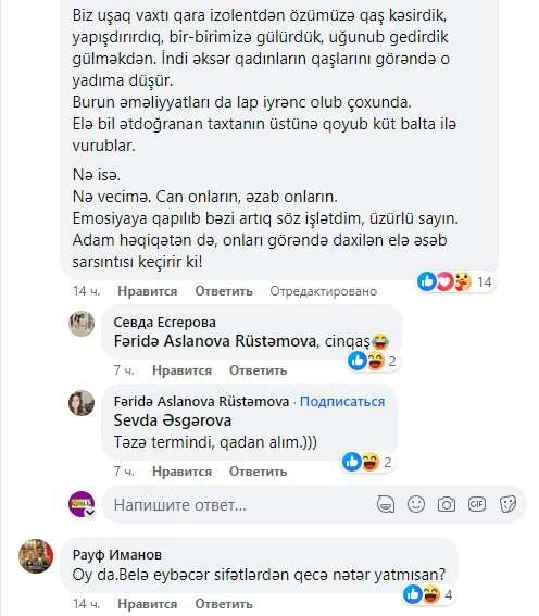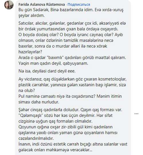Qoyunun qığına oxşar zir-zibili gül kimi qadınların qaşlarına yaxıb onları yaman günə qoyanların hamısı cəzalandırılmalıdır.