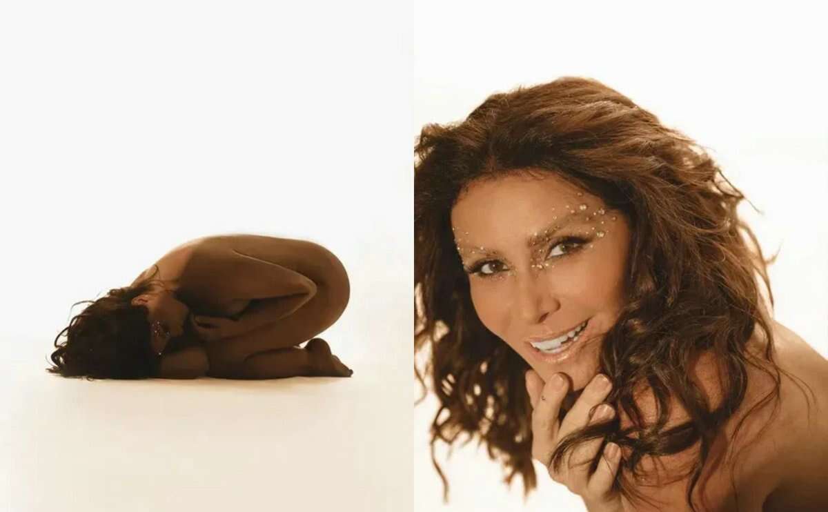48 yaşlı aktrisanın bədəni yalnız parlaq şərq üslublu makiyaj və işıq vasitəsilə yaradılan kölgə ilə örtülüb.