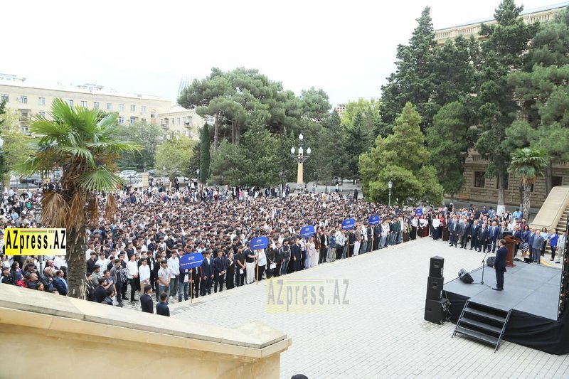 AZpress.AZ xəbər verir ki, əvvəlcə universitetin foyesində ulu öndər Heydər Əliyevin büstünün önünə güllər düzülüb. Daha sonra Azərbaycanın ərazi bütövlüyü və suverenliyi uğrunda canlarından keçmiş Vətən övladlarının xatirəsi bir dəqiqəlik sükutla yad olunub, Dövlət Himni səsləndirilib.