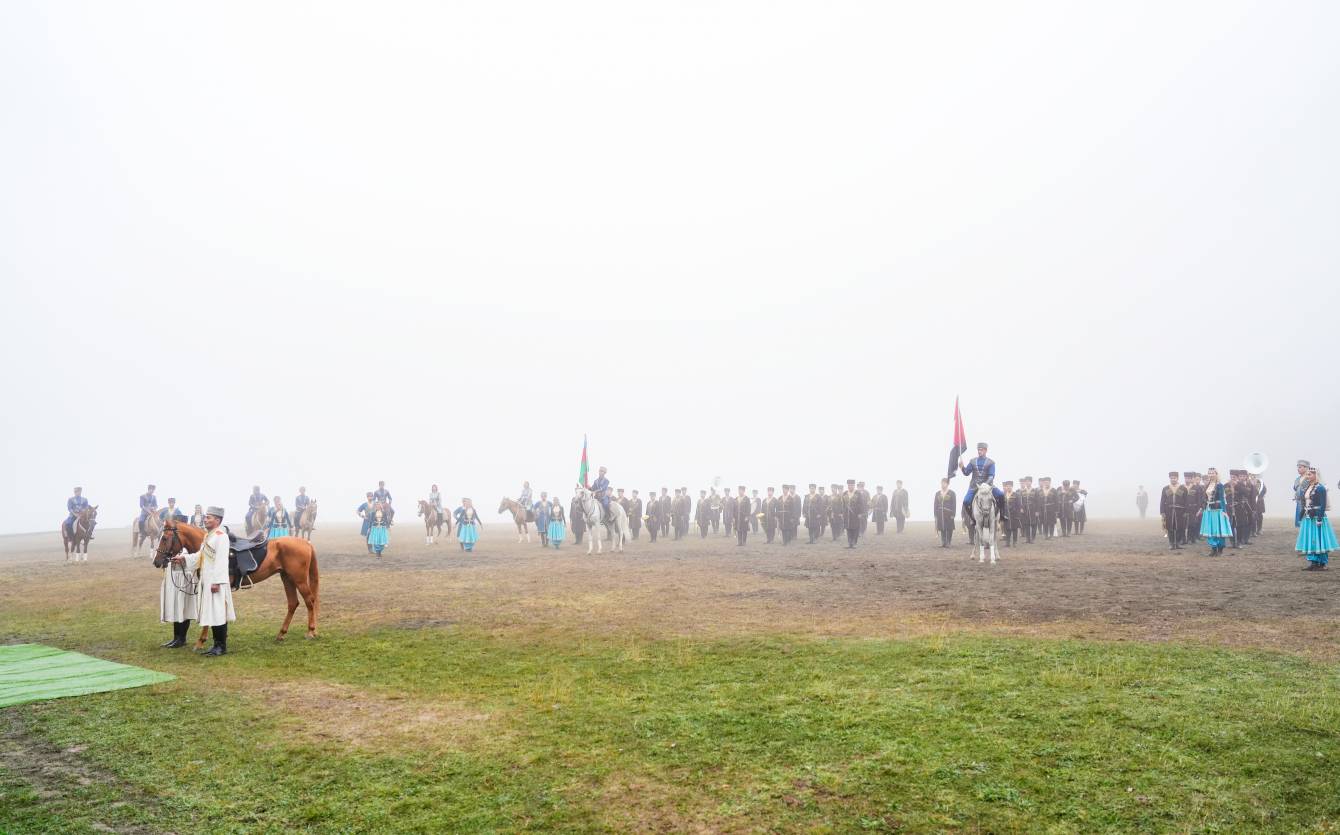 Prezidentlər İlham Əliyev və Şeyx Məhəmməd bin Zayed Al Nəhyan Cıdır düzündə Qarabağ atlarının şousunu izləyiblər