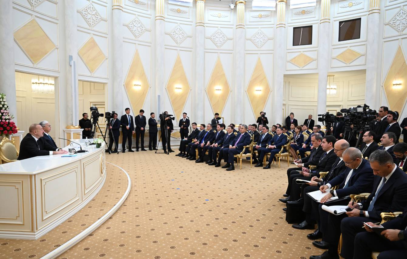 Azərbaycan və Qazaxıstan prezidentləri mətbuata bəyanatlarla çıxış ediblər