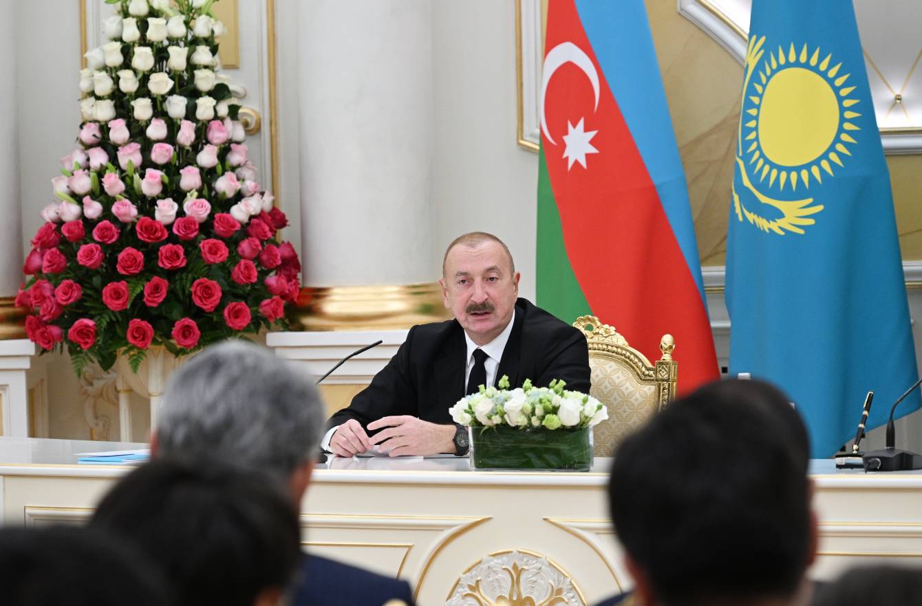 Əvvəlcə səmimi qəbula, qonaqpərvərliyə, qardaş Qazaxıstana səfərə dəvətinə görə Qazaxıstan Prezidentinə təşəkkürümü bildirmək istərdim. Qazaxıstanı mütəmadi ziyarət edirəm və Prezident Kasım-Jomart Kemeleviç Tokayevin müdrik rəhbərliyi ilə Qazaxıstanda baş verən müsbət dəyişiklikləri, inkişafı əyani şəkildə görürəm. Prezidentin modernləşdirilmə, müasir texnologiyaların, o cümlədən süni intellektin inkişafı üzrə həyata keçirdiyi islahatlar son illər Qazaxıstanın inkişaf və modernləşdirilmə yolunda inamla irəlilədiyini nümayiş etdirir.