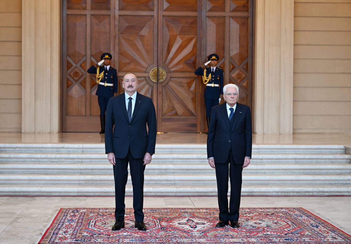 Hər iki ölkənin Dövlət bayraqlarının dalğalandığı meydanda İtaliya Prezidentinin şərəfinə fəxri qarovul dəstəsi düzülmüşdü.