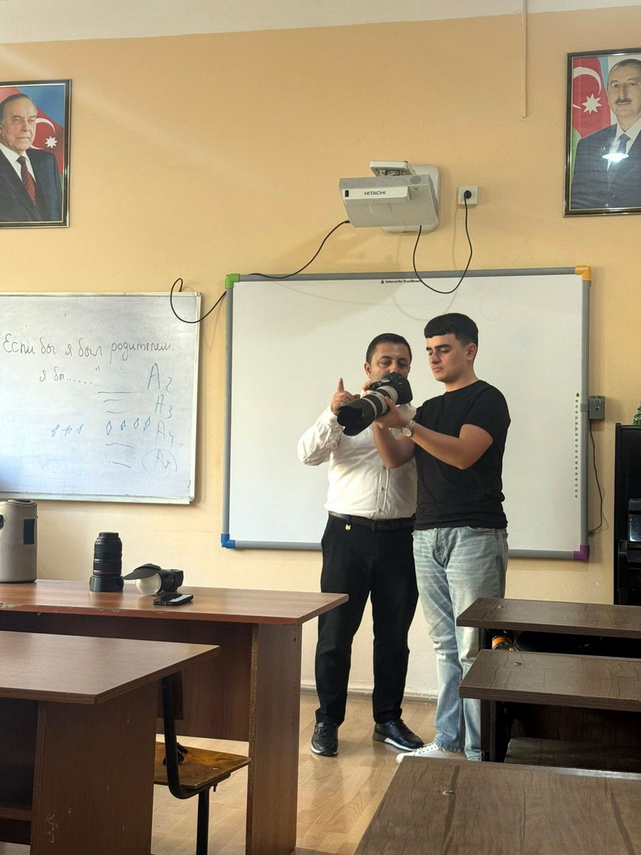 Sonda fotoqraf R.Fərman fotokamera ilə davranış qaydaları, fon, effekt, işıq, rəng, kompozisiya ilə bağlı tələbələrə praktik bilgilər verib, hər bir tələbə fotokameradan istifadə edərək bu prinsiplərə uyğun fotolar çəkiblər.