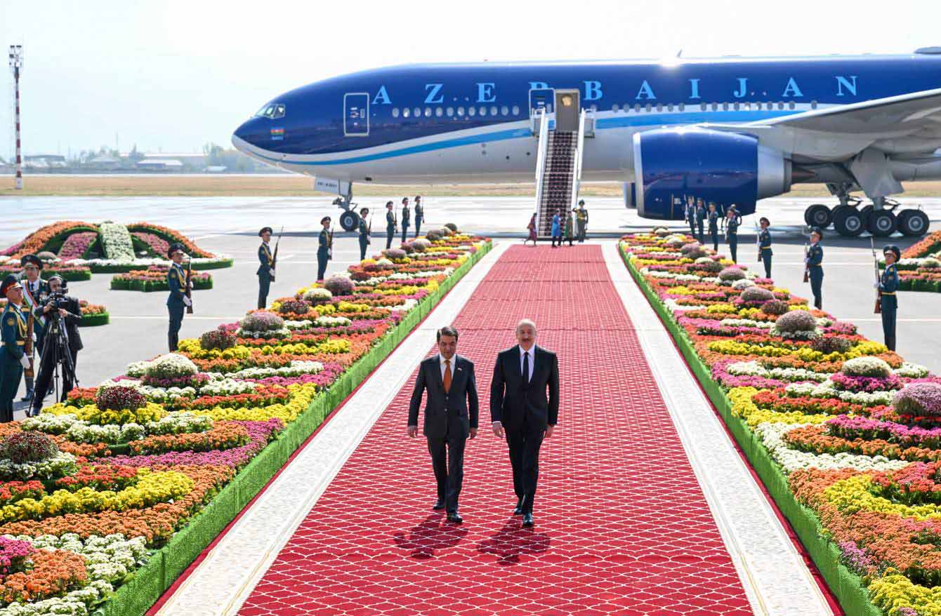 Düşənbə Beynəlxalq Aeroportunda dövlətimizin başçısının şərəfinə fəxri qarovul dəstəsi düzülmüşdü.
