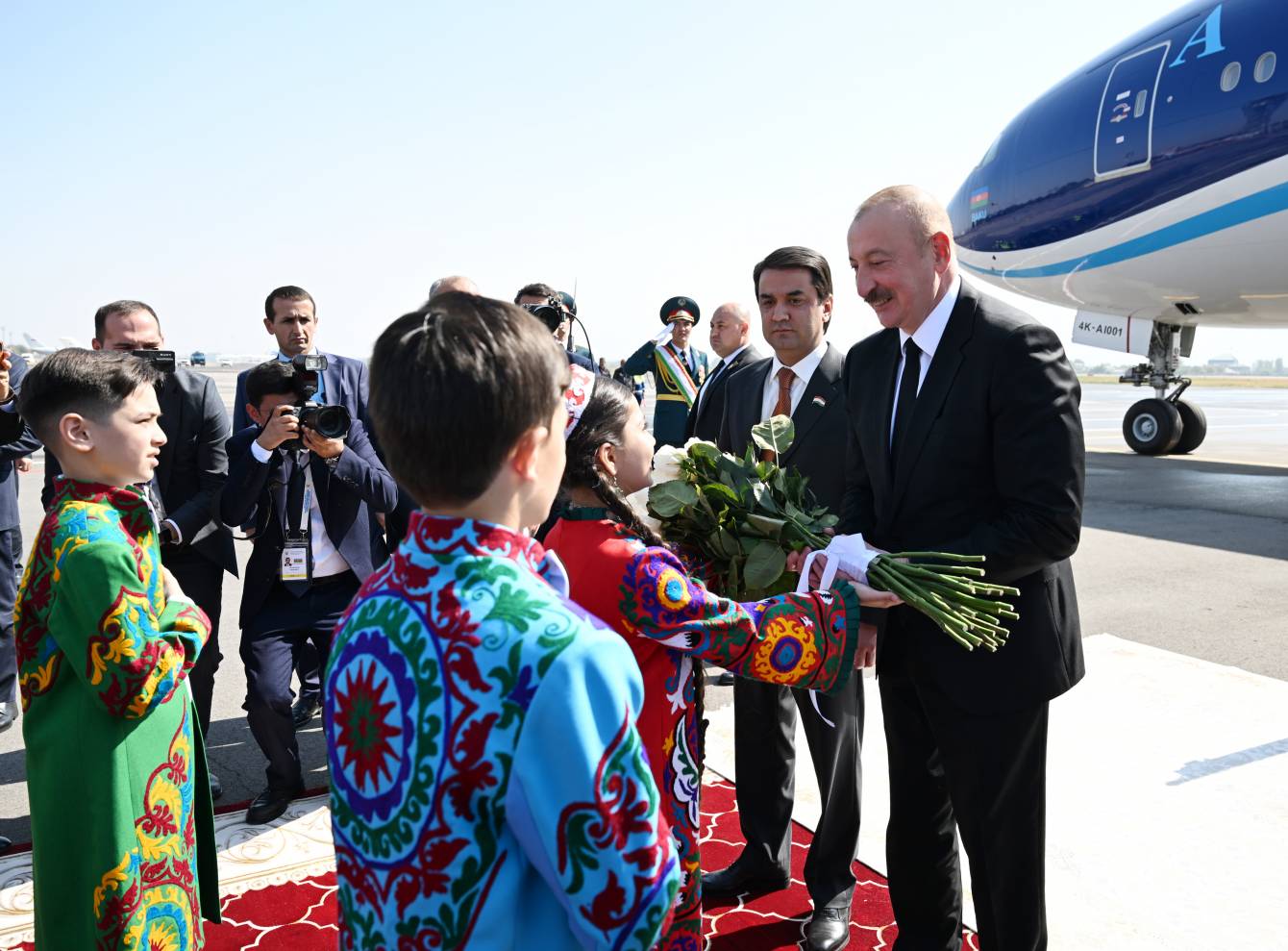 Azərbaycan Prezidentini Tacikistan Respublikası Ali Məclisi Milli Məclisinin sədri Rüstəm Emoməli və digər rəsmi şəxslər qarşıladılar.