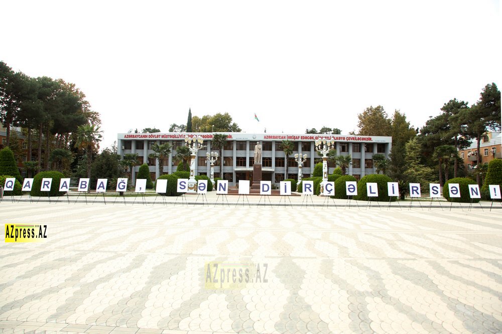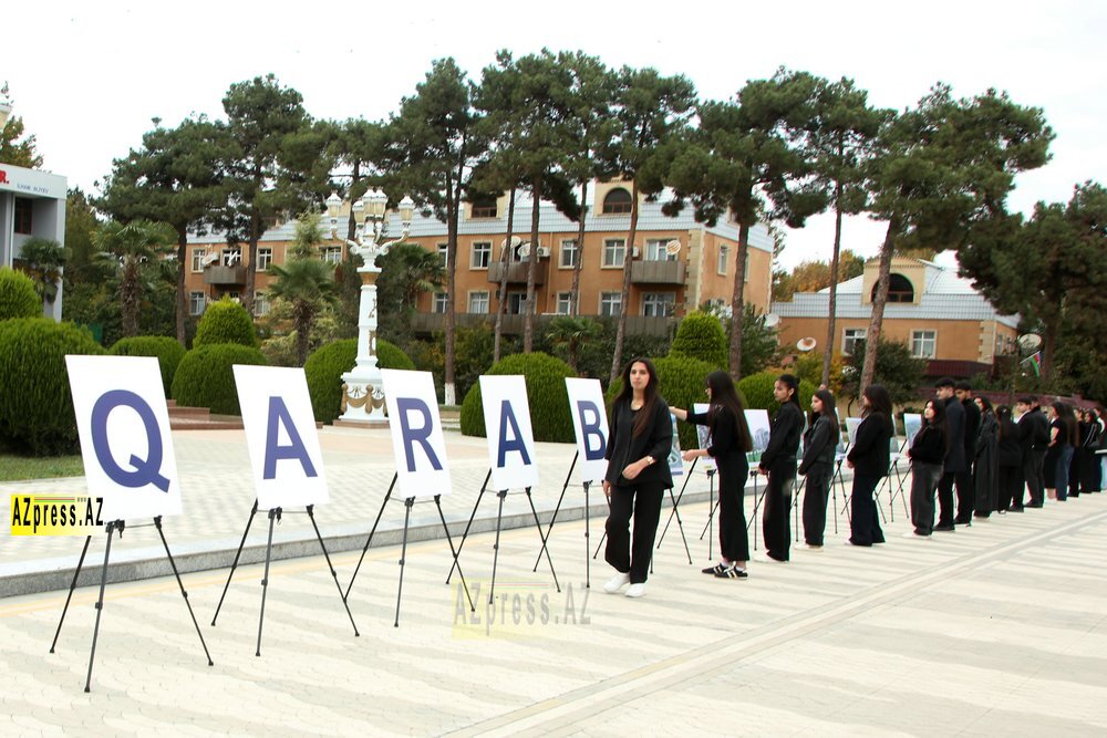 Flaşmobun kulminasiya hissəsində gənclər bir səslə “Qarabağ, sən azadsan!”, “Qarabağ Azərbaycandır!” və “Qarabağ, sən dirçəlirsən!” şüarlarını səsləndiriblər.