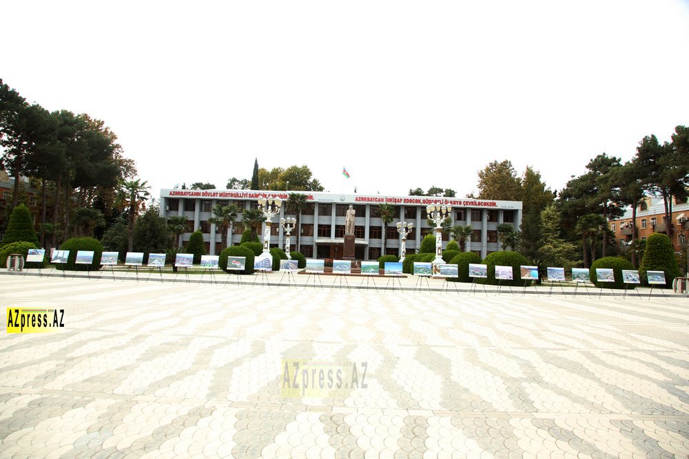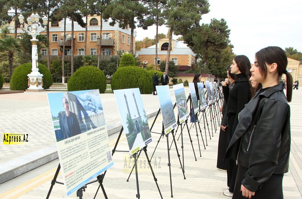 Meydanda öncədən düzülmüş 25 ədəd etüdnikdə işğaldan azad edilmiş rayonların bərpa olunmuş görüntüləri nümayiş etdirilib. Səhnənin bir küncündə əyləşən gənc musiqiçi tar alətində “Qarabağ şikəstəsi”ni canlı şəkildə ifa edib. Tarın sədaları altında səssiz şəkildə nümayiş etdirilən fotolar Qarabağın keçdiyi keşməkeşli, lakin qürurverici yolu simvolizə edib.