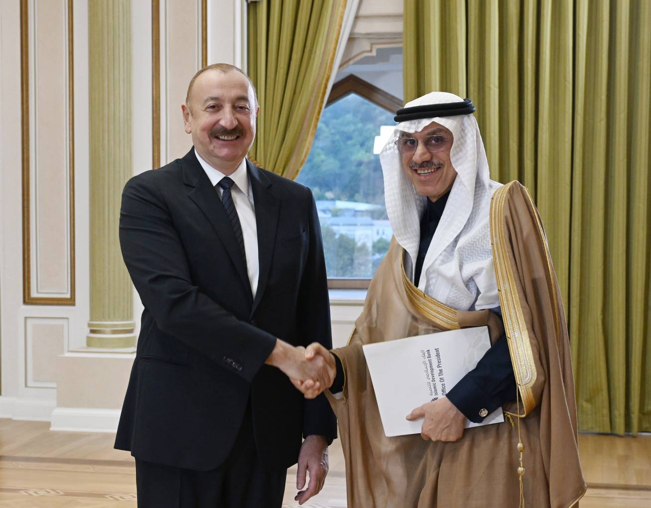 Görüşə görə nümayəndə heyətinin adından dövlətimizin başçısına təşəkkür edən İslam İnkişaf Bankı qrupunun sədri Məhəmməd Süleyman Əl-Casir işğaldan azad edilmiş Qarabağda, Şuşada olmaqdan məmnunluğunu bildirdi, orada aparılan işlərin dərin təəssürat hissi doğurduğunu dedi.