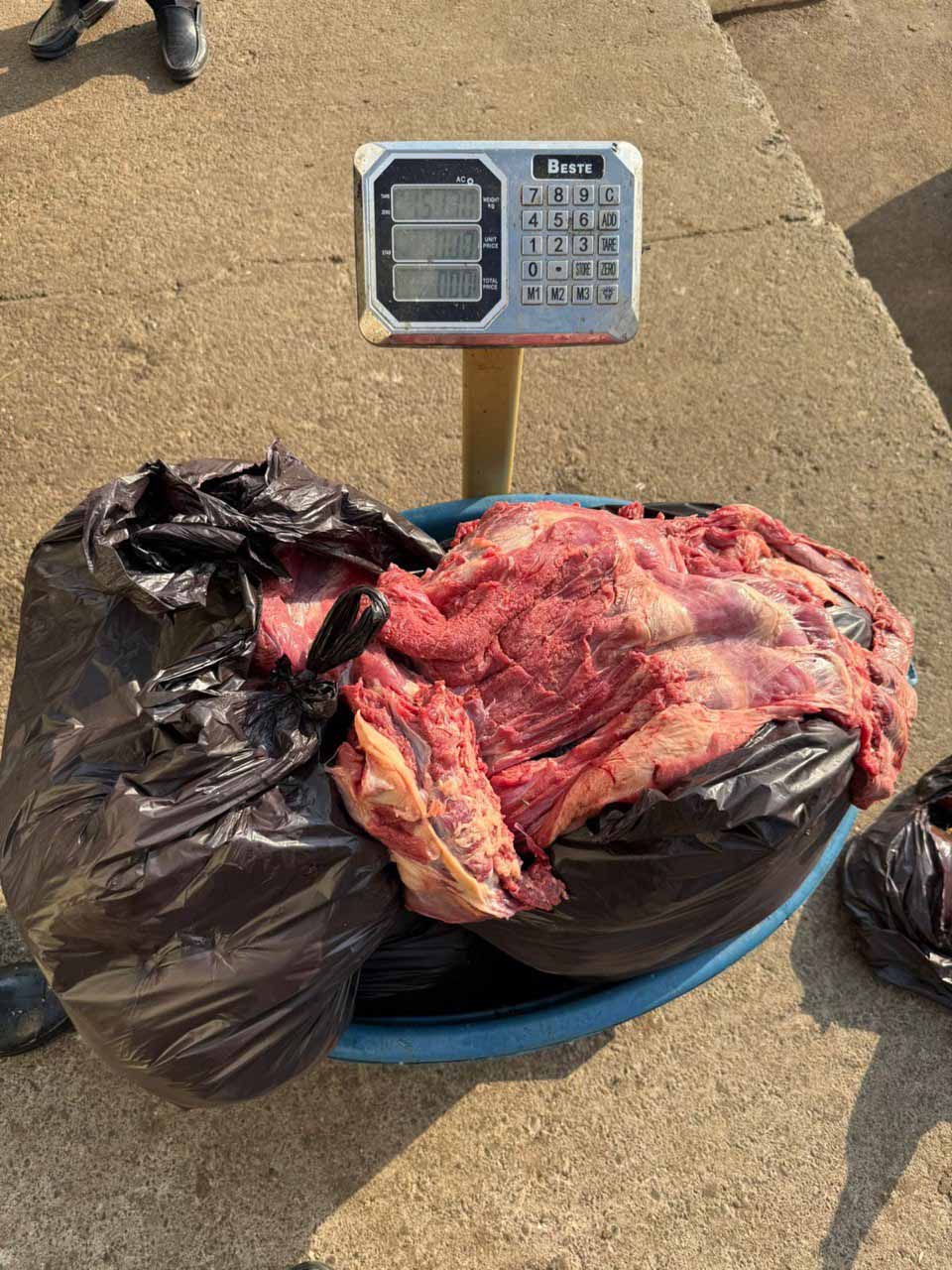 Yoxlama zamanı mənşəyi məlum olmayan ətin kəsilərək sümükdən ayrıldığı və 99 CJ 158 dövlət qeydiyyat nişanlı “Mercedes” markalı avtomobilin saxlanc yerində antisanitar şəraitdə Natiq Vaqif oğlu Hüseynov tərəfindən mal əti adı altında satış məqsədilə paytaxt Bakıya aparıldığı müəyyən edilib.