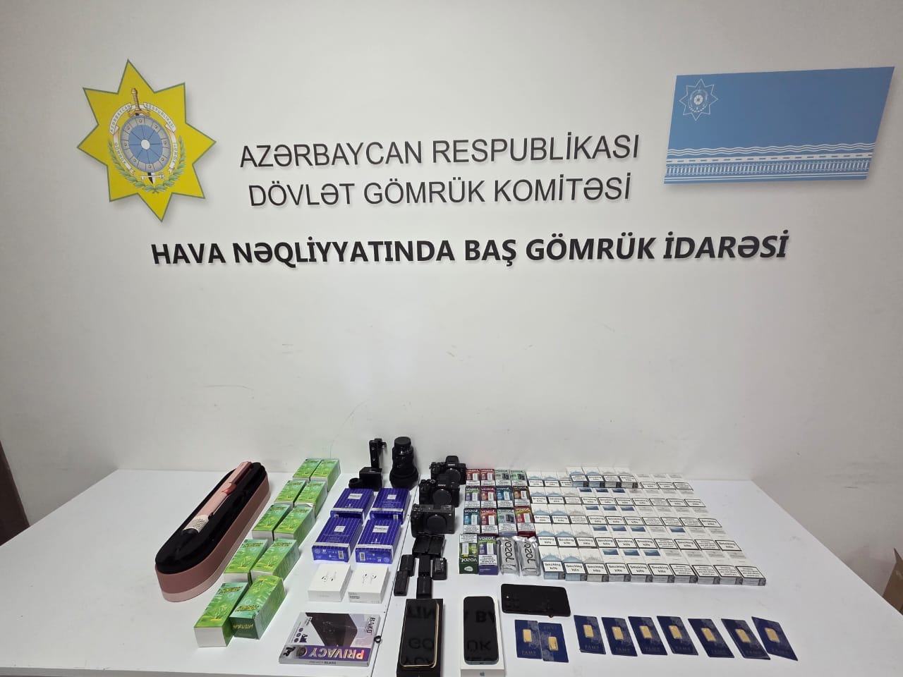 Hava Nəqliyyatında Baş Gömrük İdarəsi əməkdaşlarının həyata keçirdiyi kompleks gömrük nəzarəti tədbirləri nəticəsində qızıl külçələrin, mobil telefon, fotoaparat və digər malların qanunsuz yolla gömrük sərhədindən keçirilməsinin qarşısı alınıb.