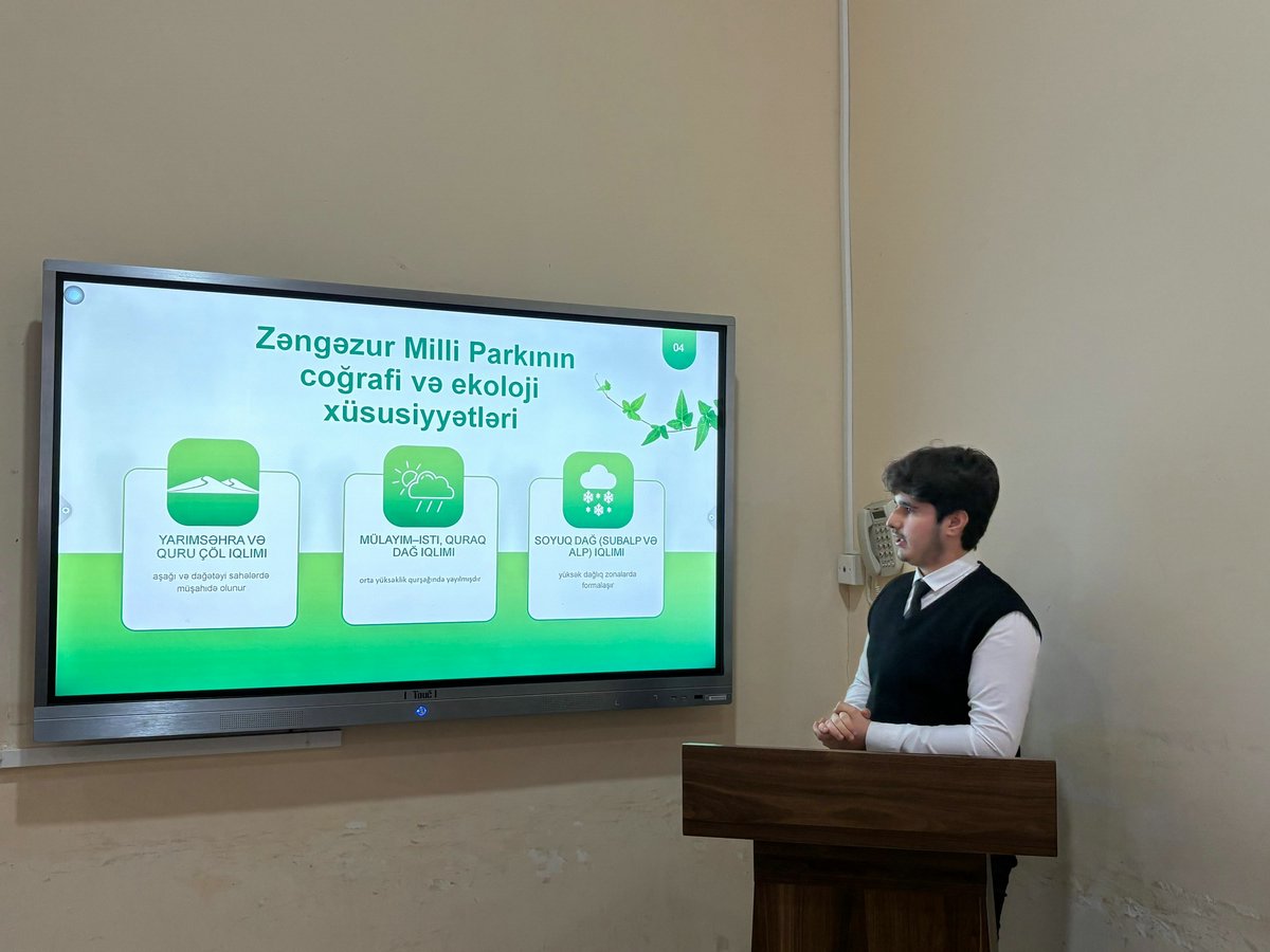 Fakültənin magistrantı Fikrət Hacıyev Bakı şəhərinin məişət tullantı sularında səthi aktiv maddələrin ekoloji təsirləri və onların aktivləşdirilmiş kömür vasitəsilə zərərsizləşdirilməsi imkanlarını elmi baxımdan təhlil edib. Fakültənin tələbələri Raul İmanov akademik Həsən Əliyev adına Zəngəzur Milli Parkının təbii potensialı və ekoturizm imkanları barədə araşdırmasını təqdim edib, bu sahənin dayanıqlı inkişaf və ətraf mühitin qorunmasındakı rolunu vurğulayıb, Əli Qurbanov isə süni intellekt texnologiyalarının ekologiya sahəsində, xüsusilə ekoloji monitorinq və təbii resursların idarə olunmasında yaratdığı yeni imkanlardan danışıb.