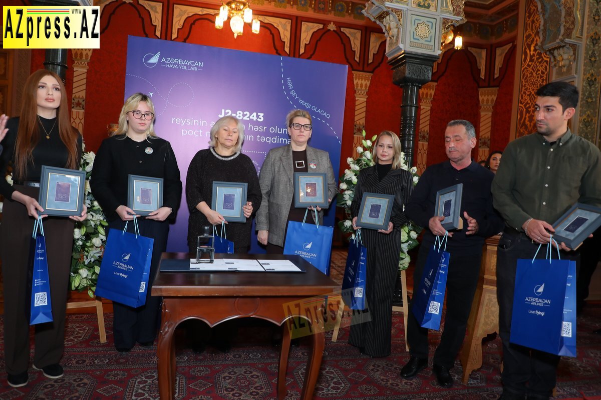 “AZCON Holding” şirkətlərindən olan “Azərbaycan Hava Yolları” (AZAL) QSC və “Azərpoçt” MMC Bakı – Qroznı marşrutu üzrə planlaşdırılmış J2-8243 reysinin icrası zamanı baş vermiş faciəyə həsr olunmuş poçt markasını təqdim edib.