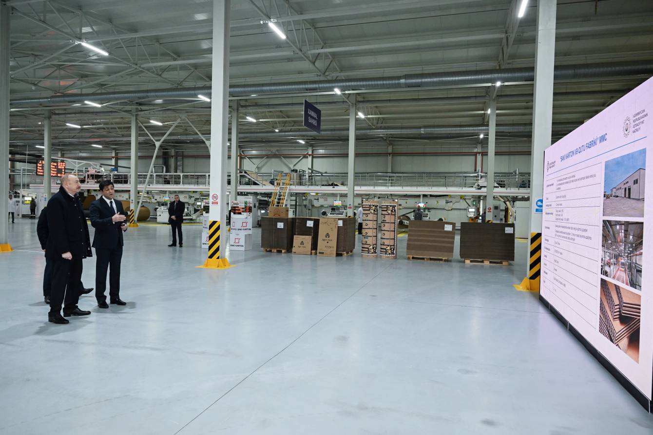 Azərbaycan Respublikasının Prezidenti İlham Əliyev yanvarın 27-də Sumqayıt Sənaye Parkında “Bakı Karton və Qutu Fabriki” MMC-nin karton və qutu taralarının istehsalı müəssisəsinin açılışında iştirak edib.