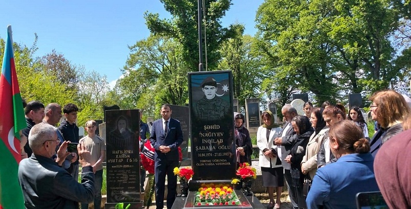 Daha sonra tədbir şəhidin məzarı önündə davam etdirilib. İştirakçılar şəhidin məzarını ziyarət edərək önünə gül dəstələri düzüb, ruhuna dualar oxuyublar.