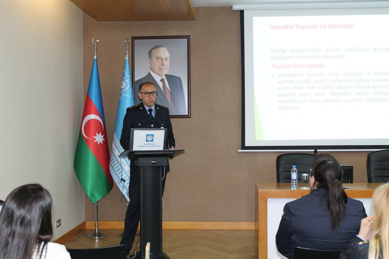 Daha sonra Maliyyə şöbəsinin rəisi Arzu Həsənov “Dövlət büdcəsindən Tibbi Xidmət İdarəsinə (TXİ) ayrılan vəsaitin təyinatı üzrə xərclənməsinə nəzarət işinin təşkili” barədə təqdimatla çıxış edərək Dövlət Büdcəsi Haqqında Qanun, dövlət büdcəsindən ayrılan vəsaitin təyinatı və istifadəsi, səmərəli xərcləmə, şəffaflıq və hesabatlılıq, audit və inzibati nəzarət barədə detallı məlumat verib.
