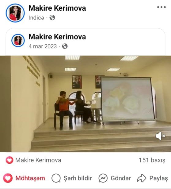 İddiaçı qeyd edir ki, əvvəlki dövrdə testlə keçirilən attestasiyada ən yüksək nəticə göstərərək 5 bal alıb. Qeyd edə bilərik ki, müəllimənin tələbələri Ümumilli lider Heydər Əliyevin 101 illiyinə həsr edilmiş konsertdə uğurla çıxış ediblər (fotolar aşağıdadır). Lakin icraçı direktor Gülnarə Səfərova 21 ildir tam professional müəllimə Mahirə Kərimovaya qarşı qərəzli mövqe irəli sürmüşdür. 10.03.2025-ci il tarixində keçirilən attestasiyada yüksək səviyyədə bilik və bacarıqlarımı nümayiş etdirməsinə baxmayaraq, 10-15 dəqiqəlik "iclas"dan sonra "uyğunsuz" hesab edilib. Nəticədə attestasiya komissiyasının qeyri-obyektiv və əsassız qərarına əsaslanaraq, fürsəti əldən verməyən icraçı direktor Gülnarə Səfərova, şikayətçi müəlimə ilə bağlanmış əmək müqaviləsinə 07 aprel 2025-ci il tarixində, Azərbaycan Respublikası Əmək Məcəlləsinin 70-ci maddəsinin “c” bəndi ilə qanunsuz şəkildə xitam verilib.