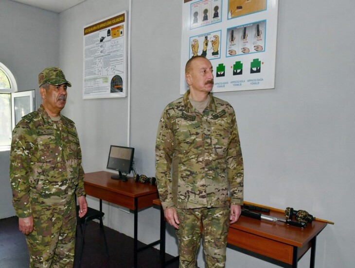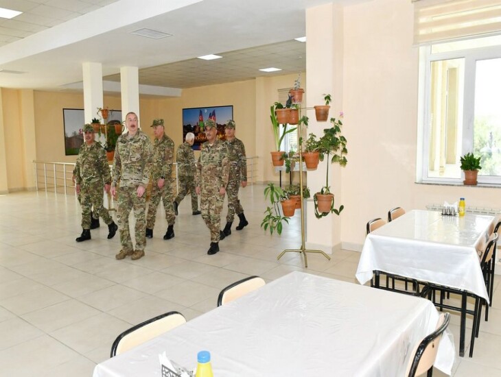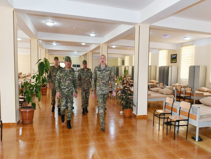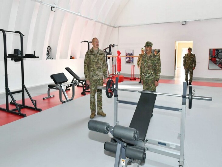 Sonra Ali Baş Komandan əsgər yataqxanasında yaradılan şəraitlə tanış oldu, oradakı silah otağı, əşya anbarı, şəxsi heyətin mənəvi-psixoloji hazırlığı üçün ideoloji iş və digər inzibati otaqlara baxdı. Silah otağında Prezident İlham Əliyevə əksəriyyəti Azərbaycan istehsalı olan silah nümunələrinin taktiki-texniki xüsusiyyətləri barədə məlumat verildi.