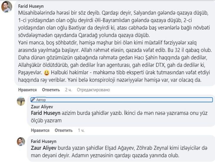 İkinci şübhəli məsələ onun ölümündən sonra verilən açıqlama idi. Guya onlar toyda olublar Səlyanda, içkili olublar. Amma araşdırma zamanı məlum olub ki, mərhum Salyana gedib, amma həmin günü toy olmayıb və orda toyda iştirak etməyib. Kimin sifarişidir bilinir, bu gün sağ olan bəzi Ağdamlılar da bilir bu "qəzanın" elə belə olmadığını. Kamaz sürücüsü həbsdə olanda Səxavətin ailəsinə etiraf etmək istədiyini bildirir. Səhər isə “Kamaz” sürücüsü həbsdə müəmmalı şəkildə öldü.