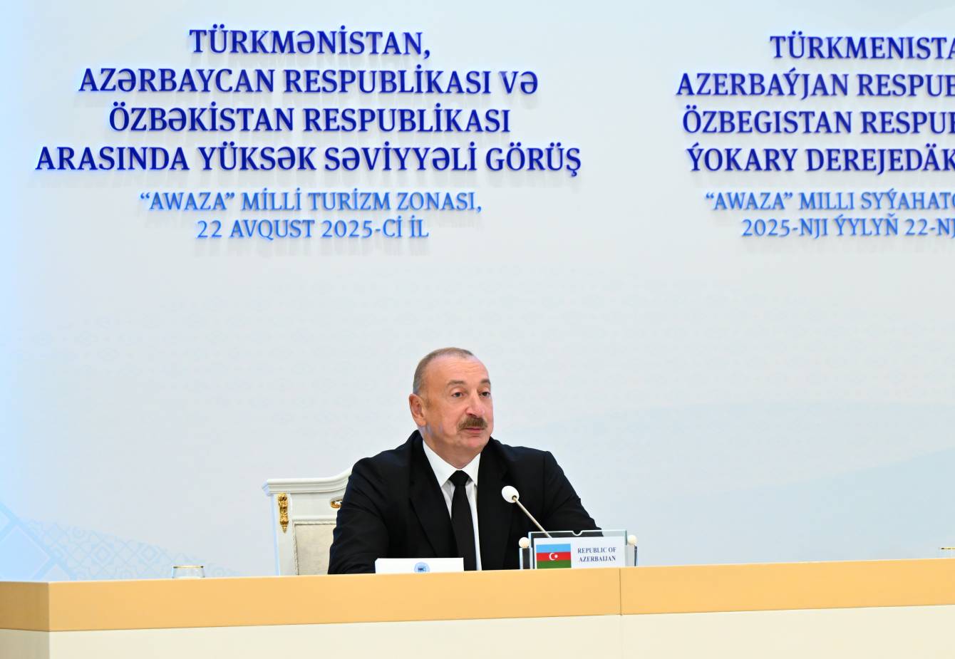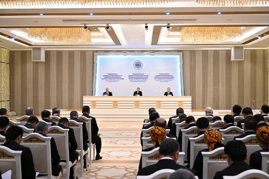 Avqustun 22-də Türkmənbaşı şəhərində Azərbaycan Respublikasının Prezidenti İlham Əliyev, Türkmənistan Xalq Məsləhətinin sədri Qurbanqulu Berdiməhəmmədov və Özbəkistan Respublikasının Prezidenti Şavkat Mirziyoyev Türkmənistan, Azərbaycan Respublikası və Özbəkistan Respublikası arasında yüksəksəviyyəli görüşün yekunlarına dair mətbuata birgə bəyanatla çıxış ediblər.