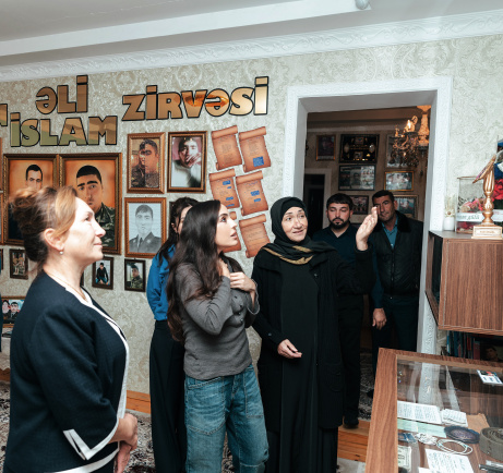 Səfər çərçivəsində Leyla Əliyeva əvvəlcə Vətən uğrunda canlarını fəda etmiş şəhid qardaşlar Əhmədovların ailəsini ziyarət edib. O, şəhidlərin xatirəsini ehtiramla yad edib, anası Sevinc Əhmədova ilə söhbət edib, qəhrəman oğullarının həyatı, döyüş yolu, eləcə də ailənin qayğı və ehtiyacları ilə maraqlanıb.