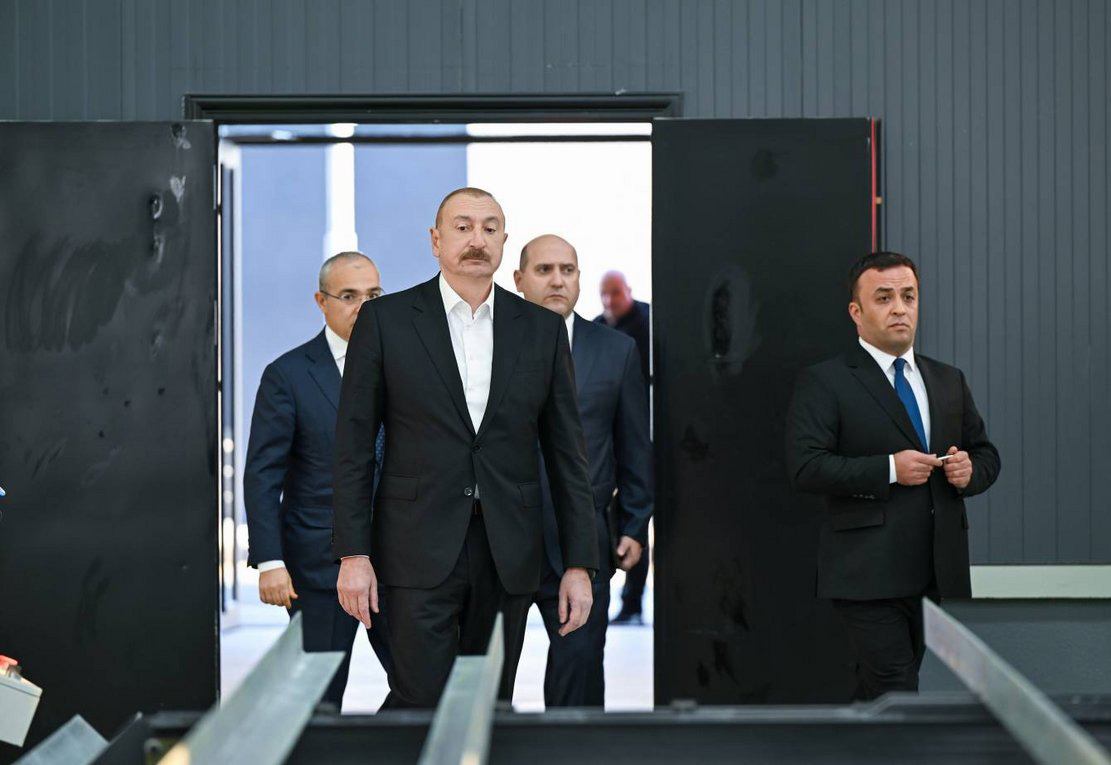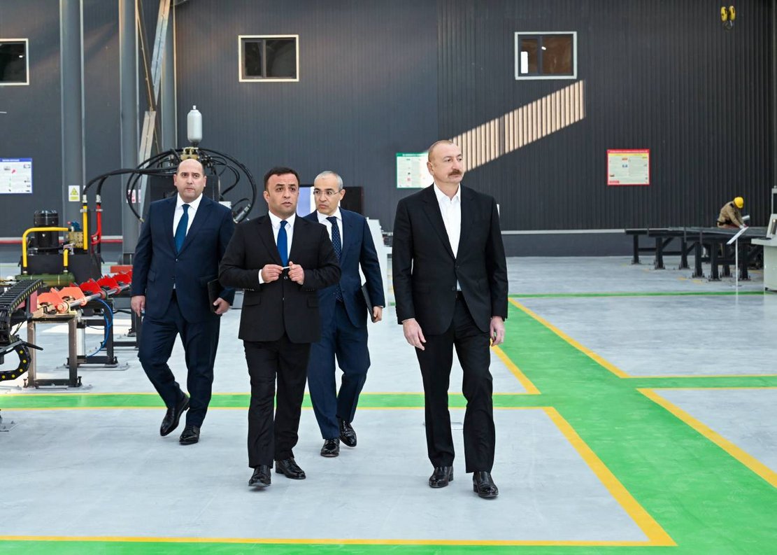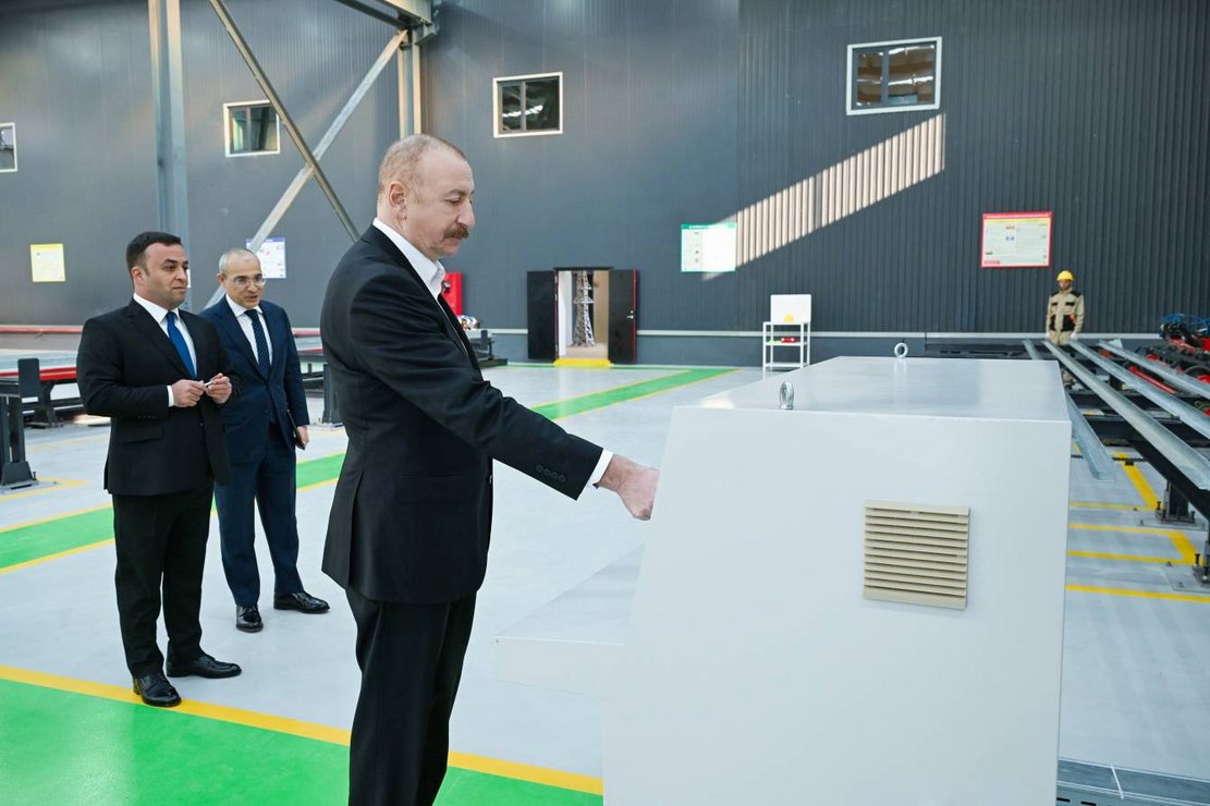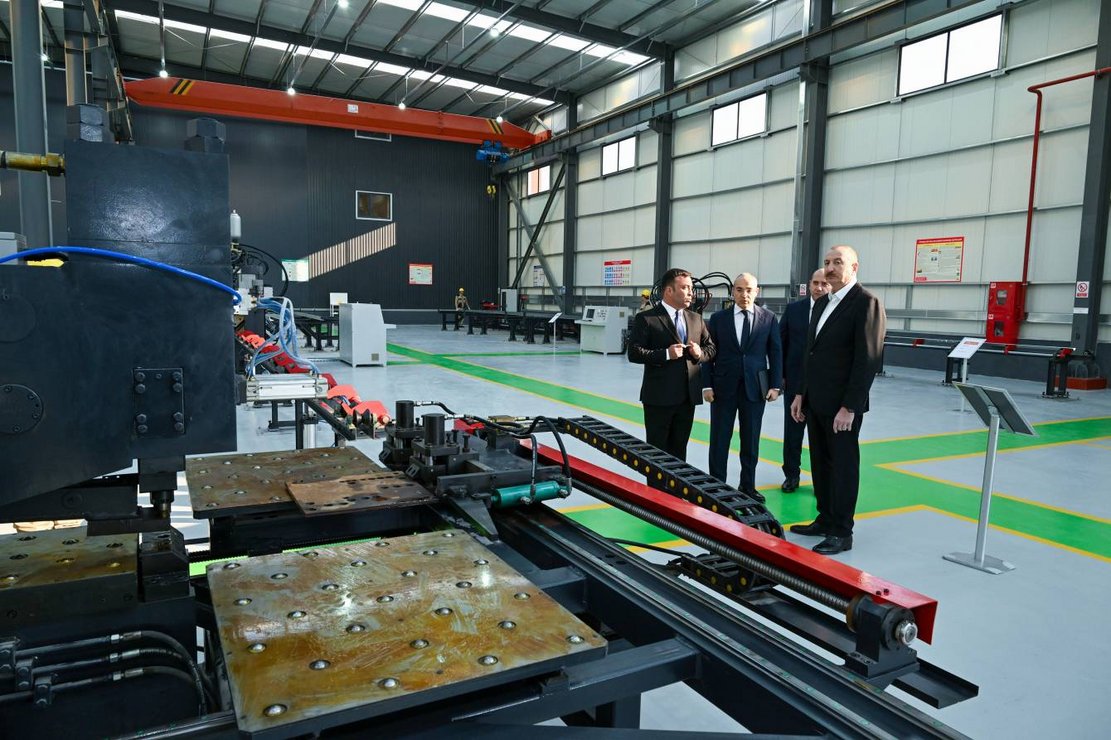 İlham Əliyev Ağdamda metal elektrik dirəklərinin istehsalı müəssisəsinin açılışında iştirak edib