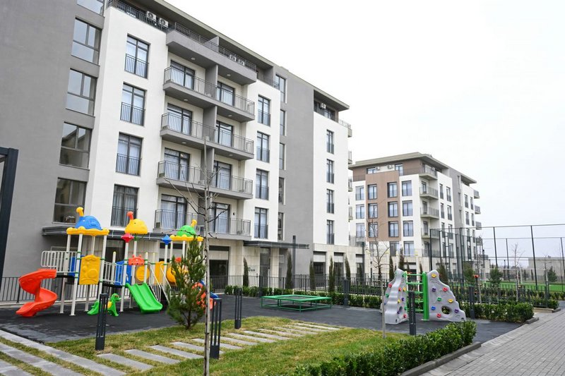 President Ilham Aliyev and First Lady Mehriban Aliyeva toured some of the completed apartments. The complex features 45 one-room, 108 two-room, 48 three-room, and 8 four-room apartments.