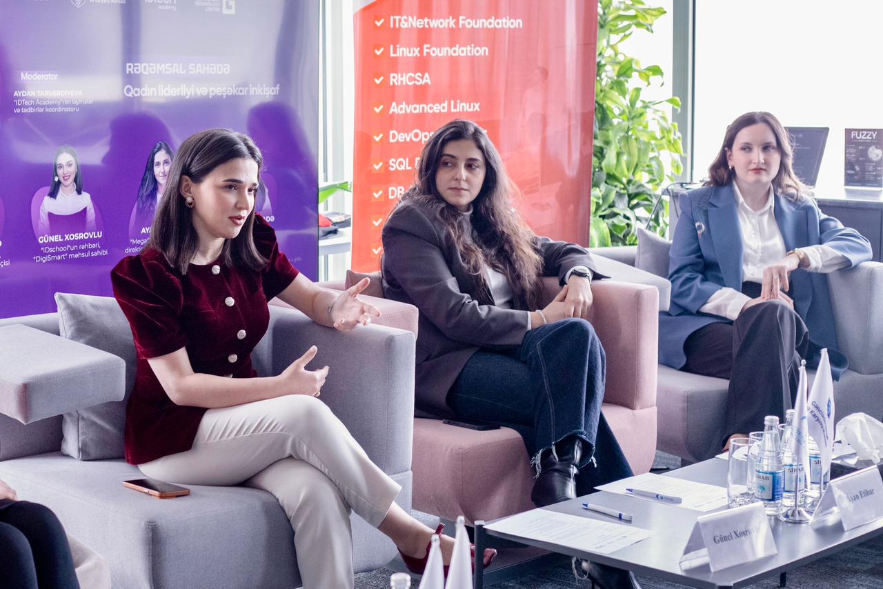 “IDTech Academy”nin Layihələr və tədbirlər koordinatoru Aydan Tarverdiyevanın moderatorluğu ilə keçirilən müzakirədə spikerlər texnologiya sahəsində qadınların rolu, gənc qızlar üçün İT sahəsində mövcud perspektivlər, rəqəmsal məhsul sahibliyinin yaratdığı imkanlar və rəqəmsal liderliyin formalaşmasında vacib bacarıqlar barədə təcrübələrini iştirakçılarla bölüşüblər.